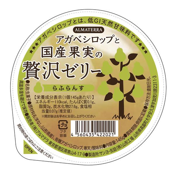 アガベシロップと国産果実の贅沢ゼリー(らふらんす) 145g アガベシロップと国産果実の贅沢ゼリー(らふらんす) 145g (OS9658) 山形産ラフランス100%使用の寒天ゼリー たっぷり果肉入り 砂糖不使用【原材料】洋なし(山形県)、有機アガベシロップ、寒天/酸味料 アガベシロップと国産果実の贅沢ゼリー(らふらんす) 145g 在庫状態 : 在庫有り ¥378 数量0